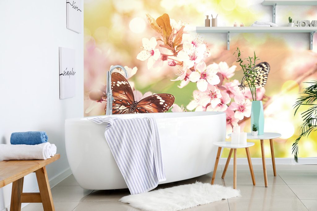 Samolepiaca tapeta motýle na konári jarných kvetov