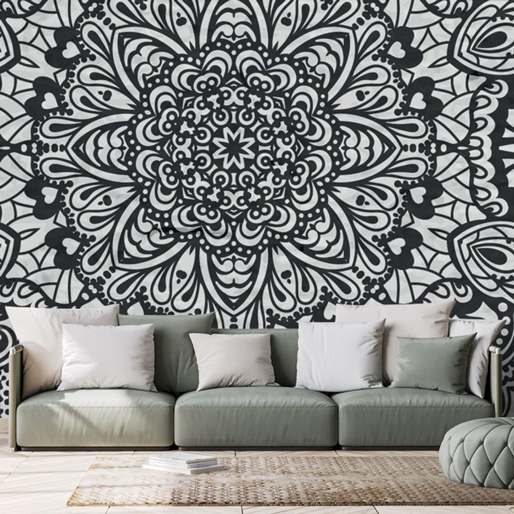 Samolepiaca tapeta nádherná vzorovaná Mandala v čiernobielom prevedení