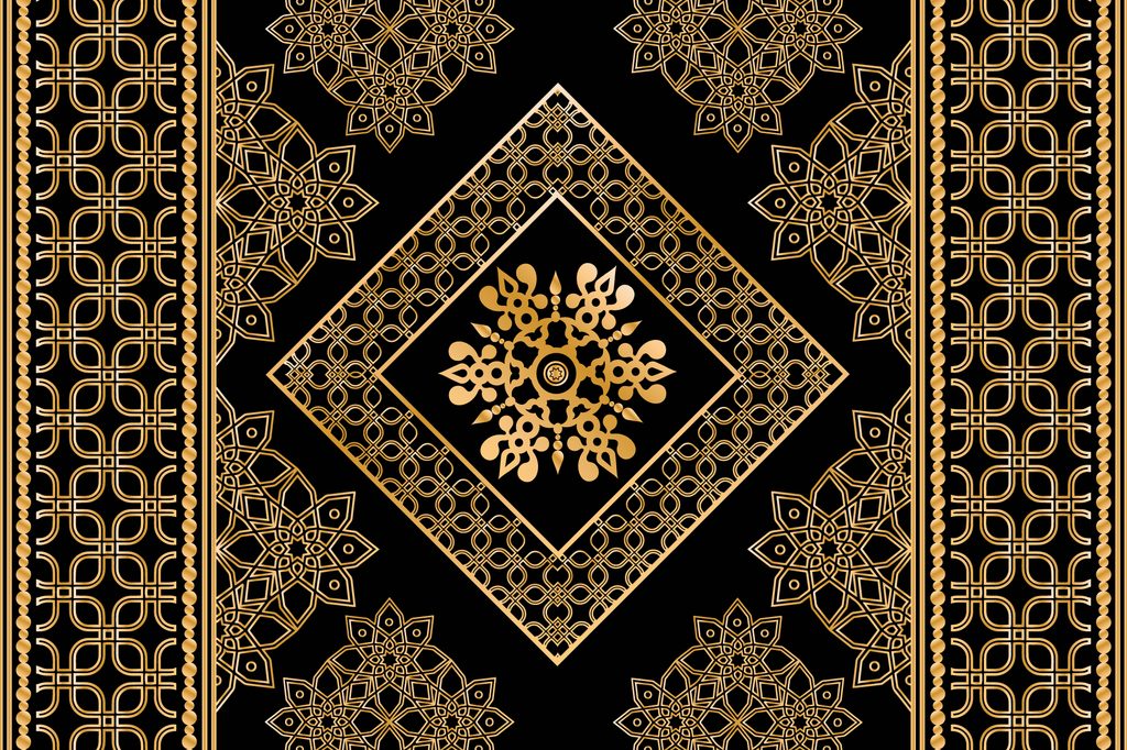 Samolepiaca tapeta nádherný zlatý ornament na čiernom pozadí
