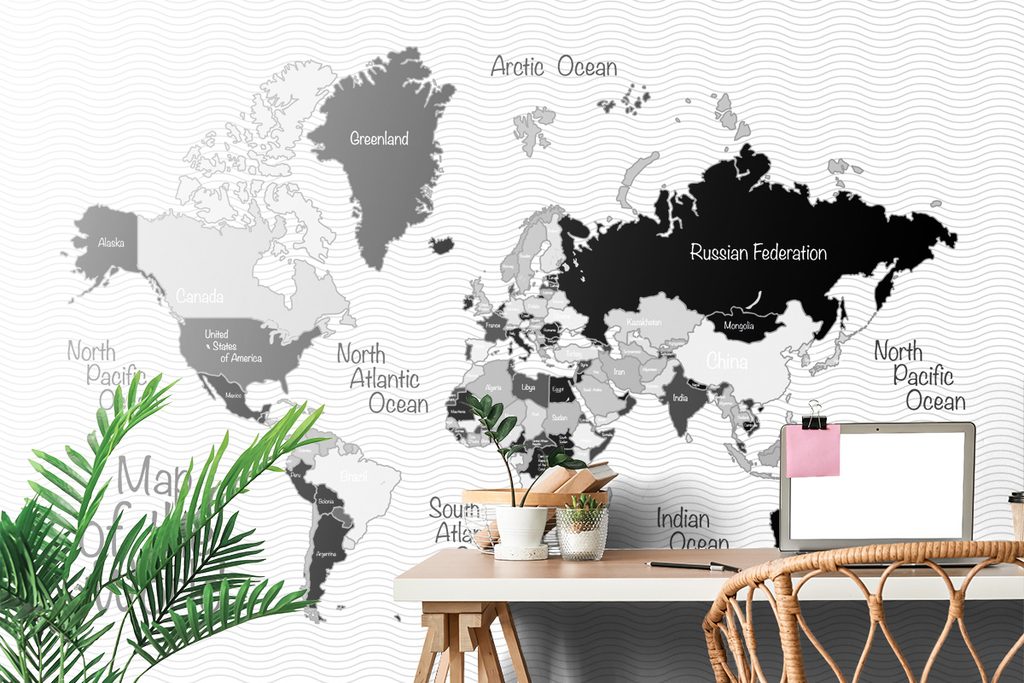 Samolepiaca tapeta neobyčajná mapa sveta v čiernobielom prevedení