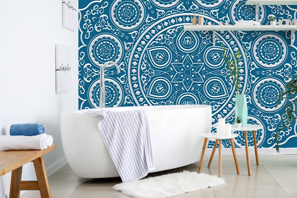 Samolepiaca tapeta nežná Mandala na modrom pozadí