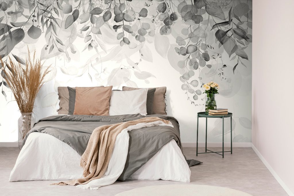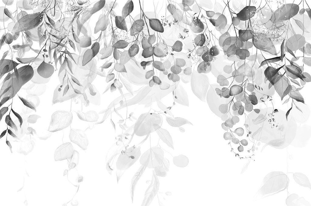 Samolepiaca tapeta nežné listy v čiernobielom prevedení