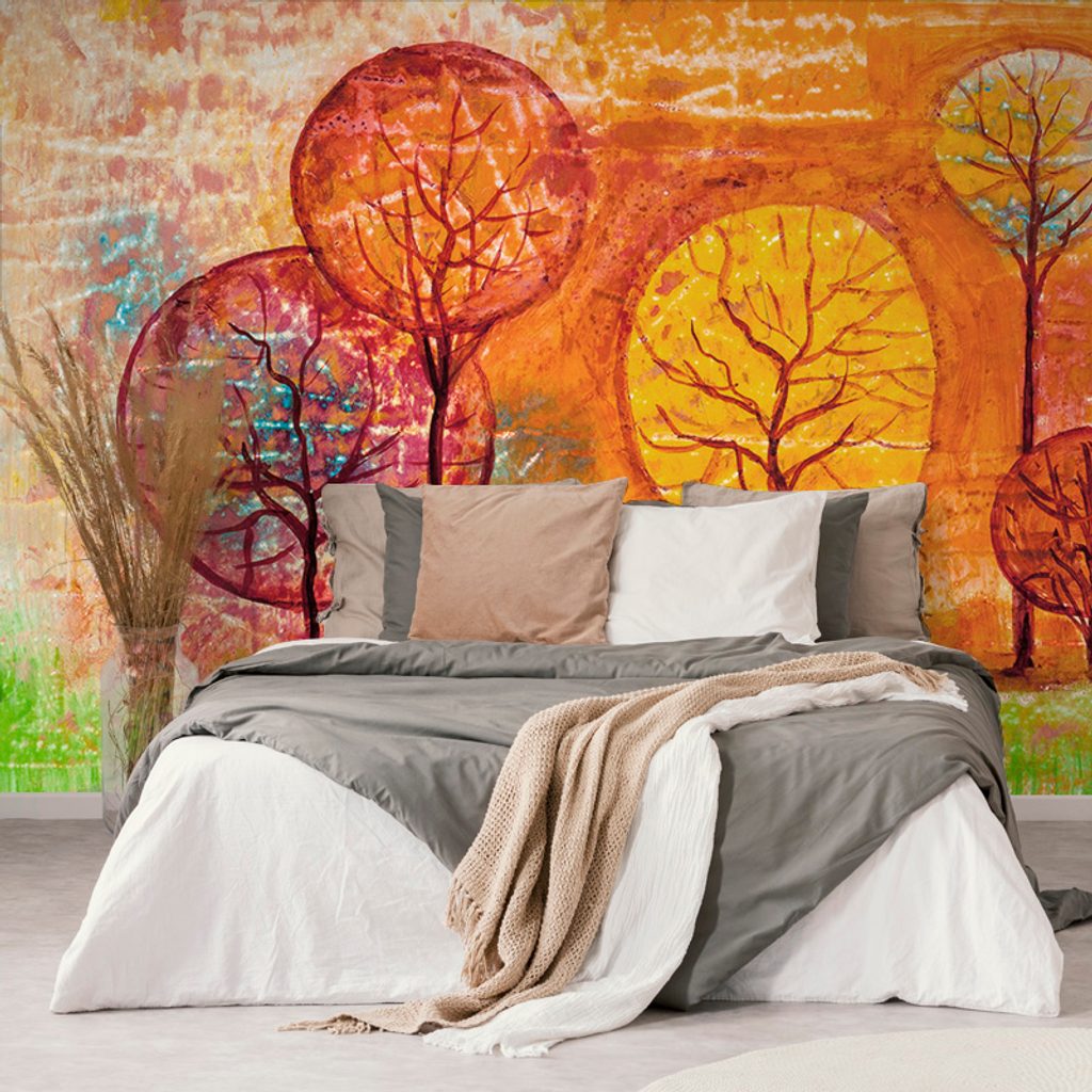 Samolepiaca tapeta nezvyčajné stromy v odtieňoch oranžovej