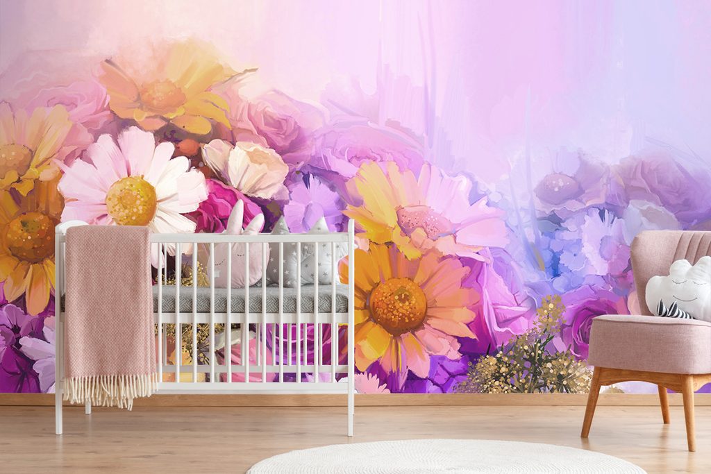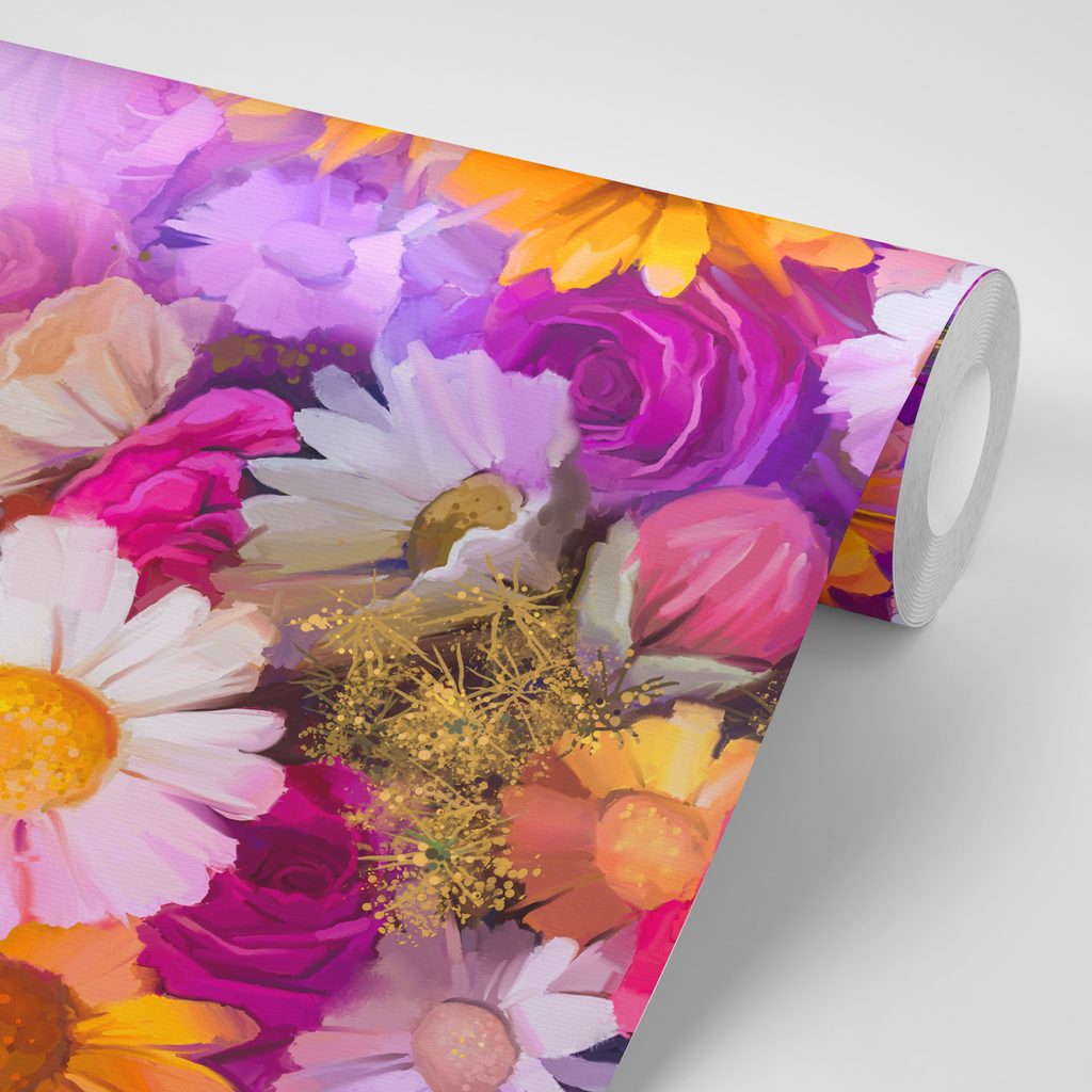 Samolepiaca tapeta olejomaľba kvetov v pastelových odtieňoch
