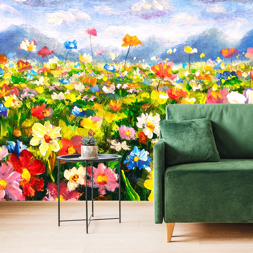 Samolepiaca tapeta olejomaľba lúky plnej kvetov