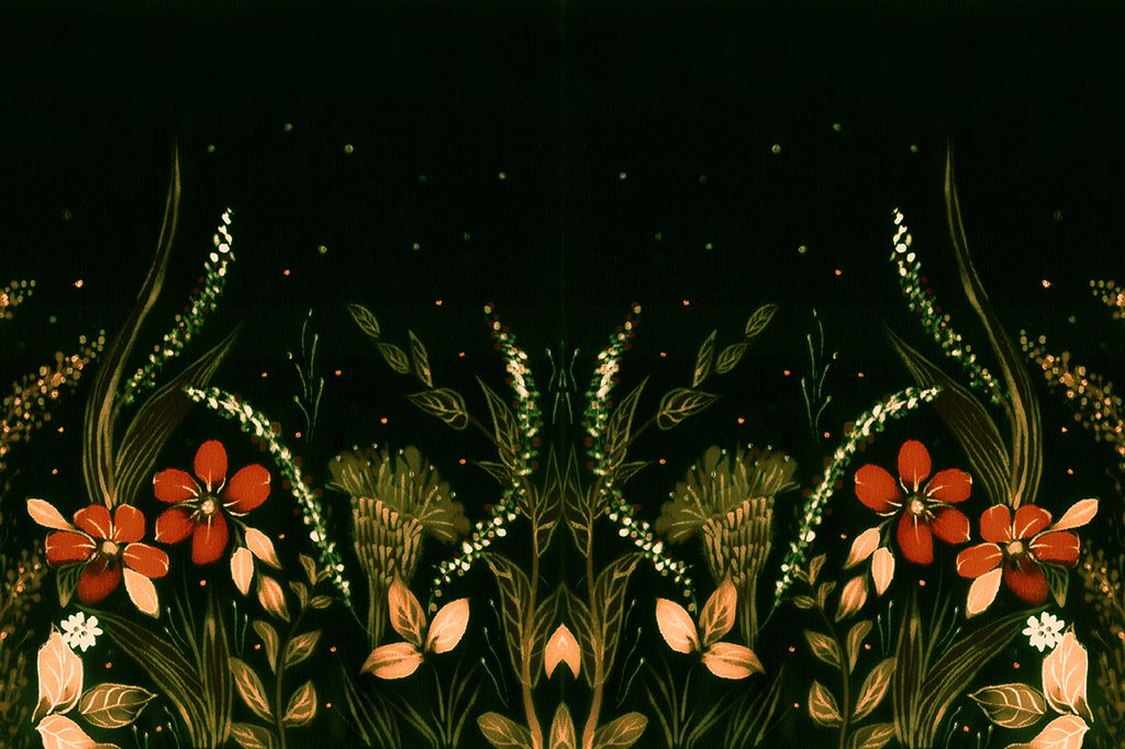 Samolepiaca tapeta maľba ženy uprostred kvetinovej lúky