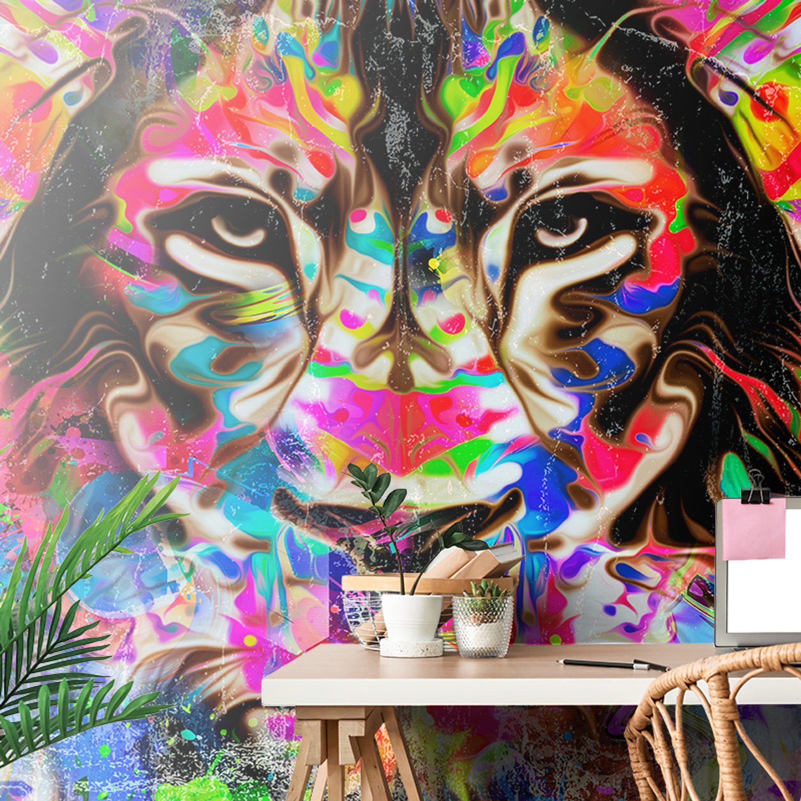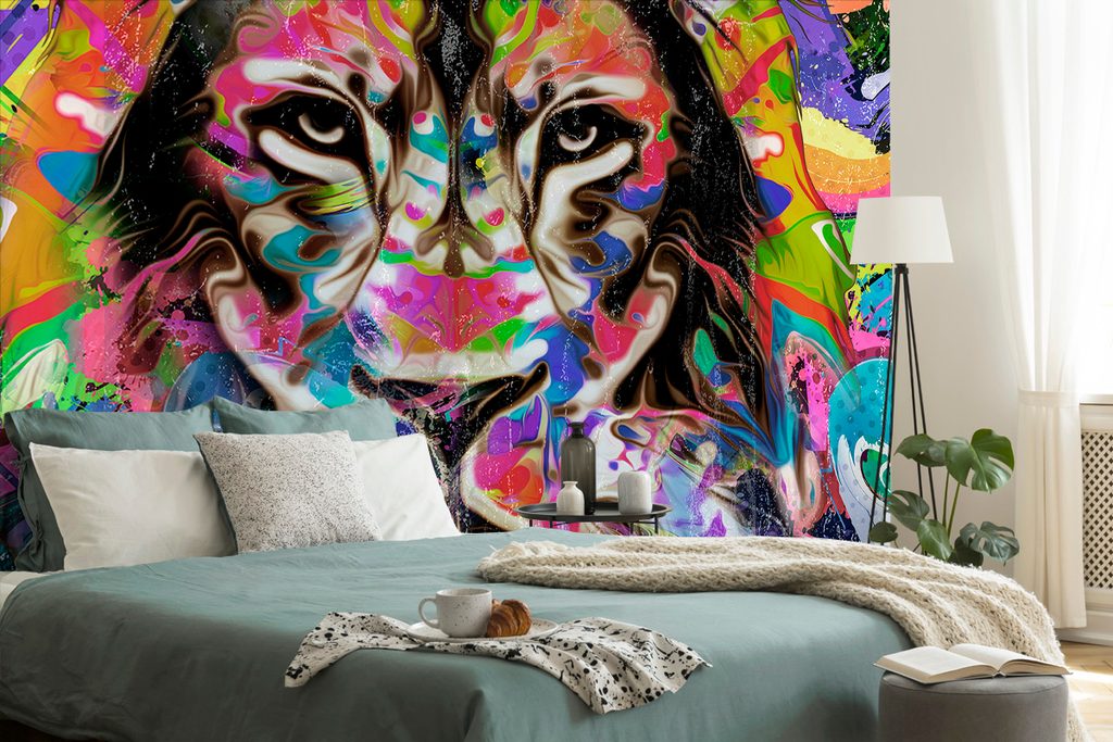 Samolepiaca tapeta pestrofarebný pohľad leva