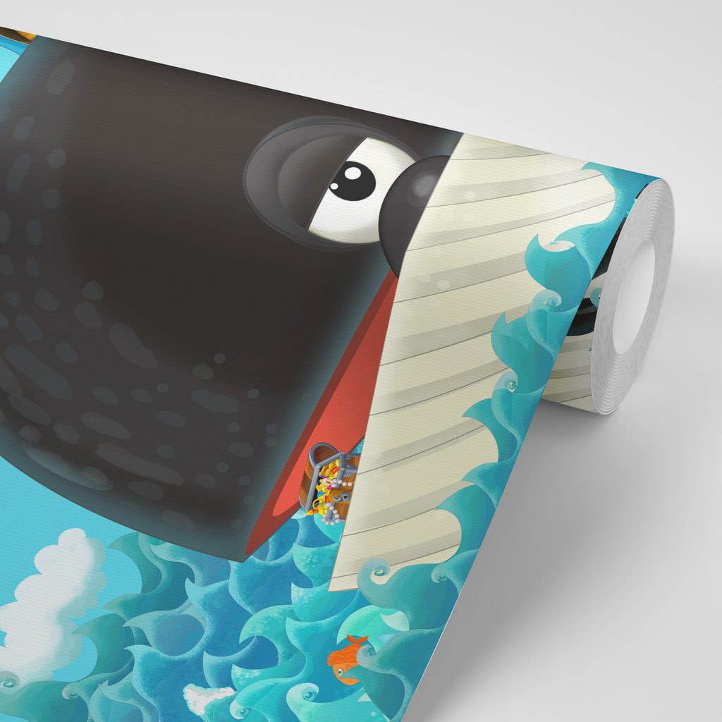 Samolepiaca tapeta plávajúca veľryba s pirátskou loďou