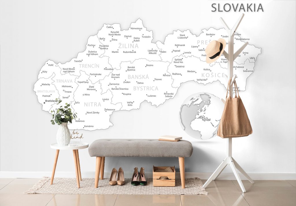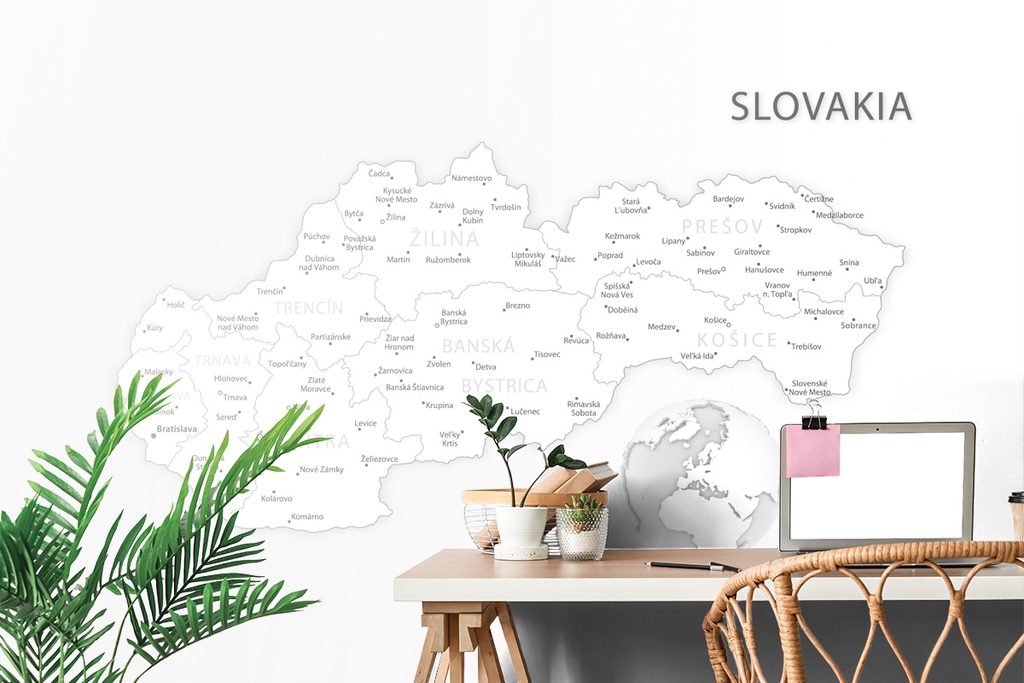 Samolepiaca tapeta podrobná mapa Slovenska v čiernobielom prevedení
