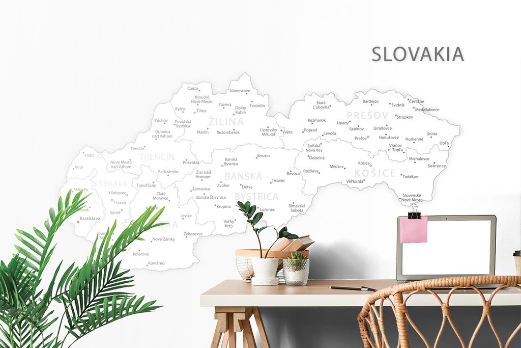 Samolepiaca tapeta podrobná mapa Slovenskej republiky v čiernobielom prevdení