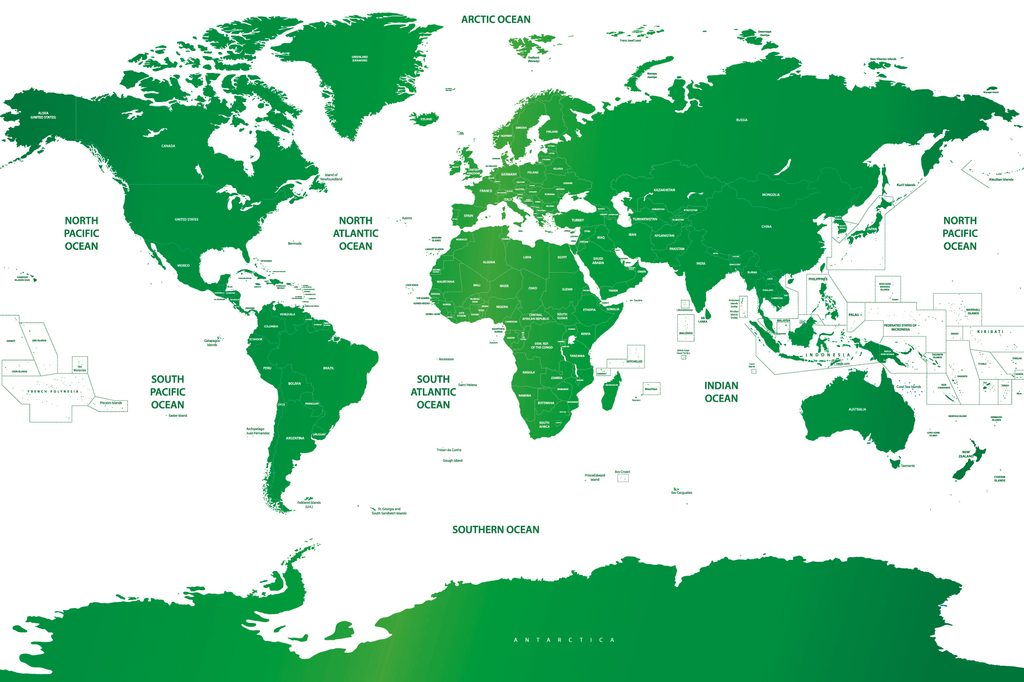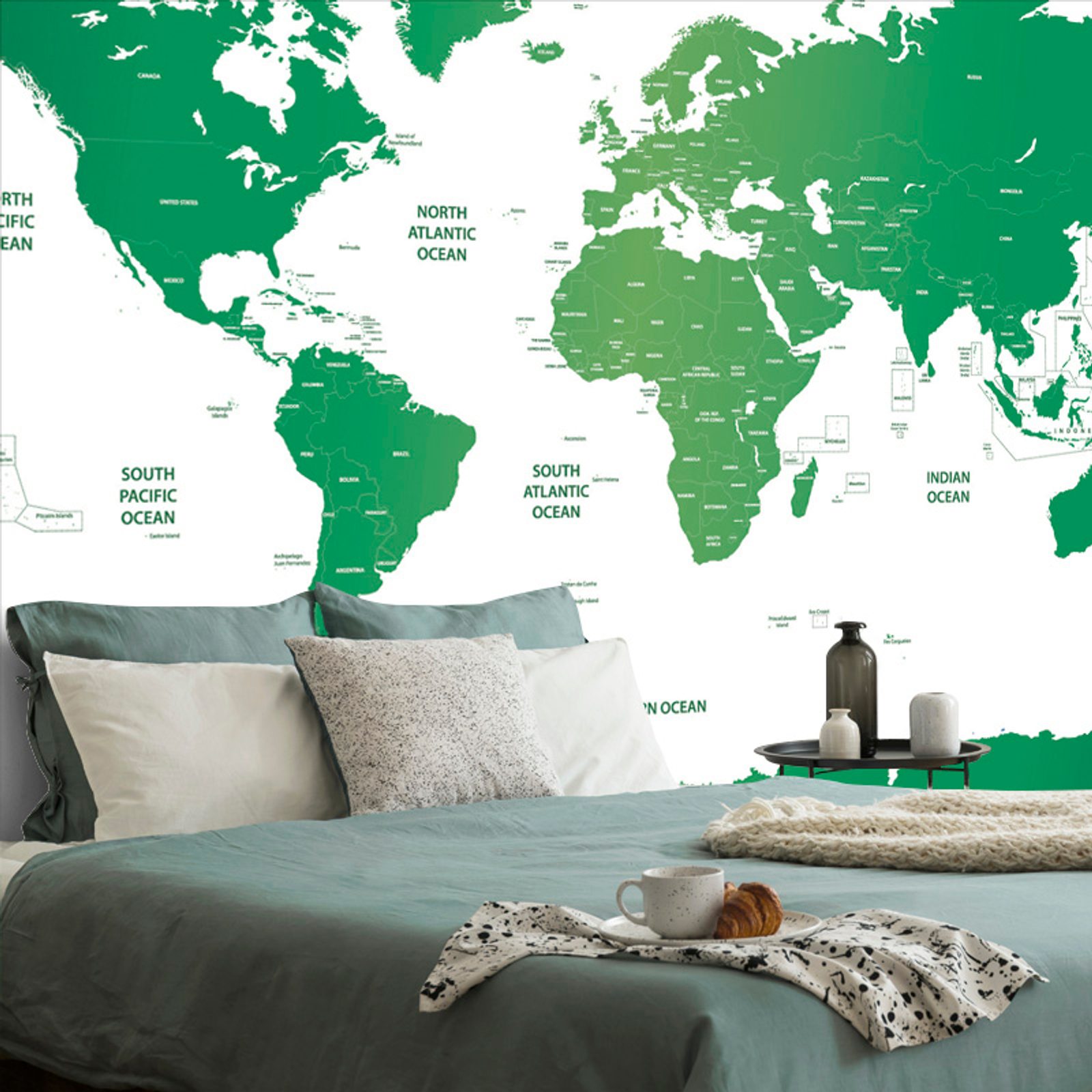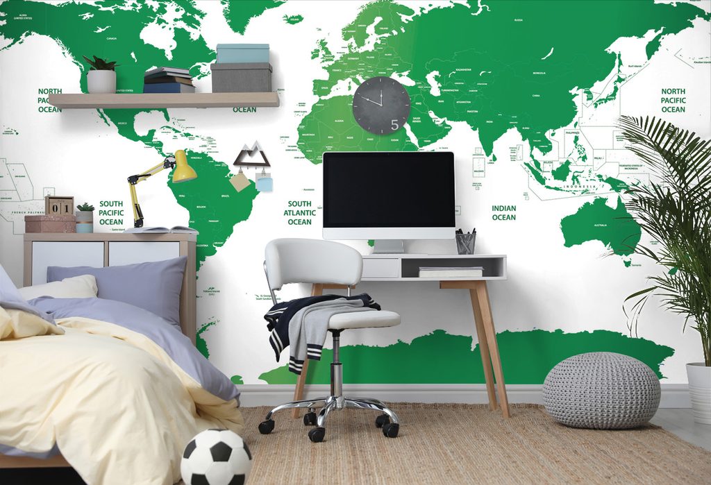 Samolepiaca tapeta podrobná mapa sveta v zelenej farbe