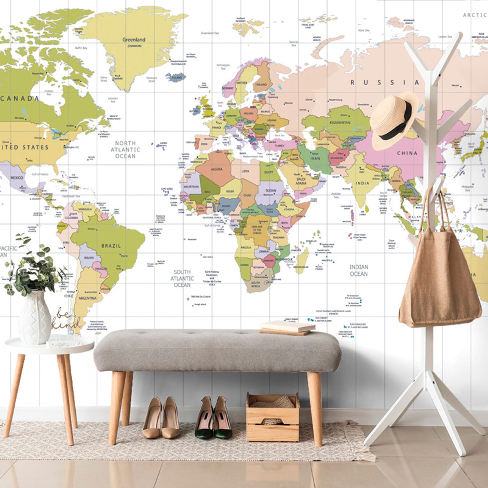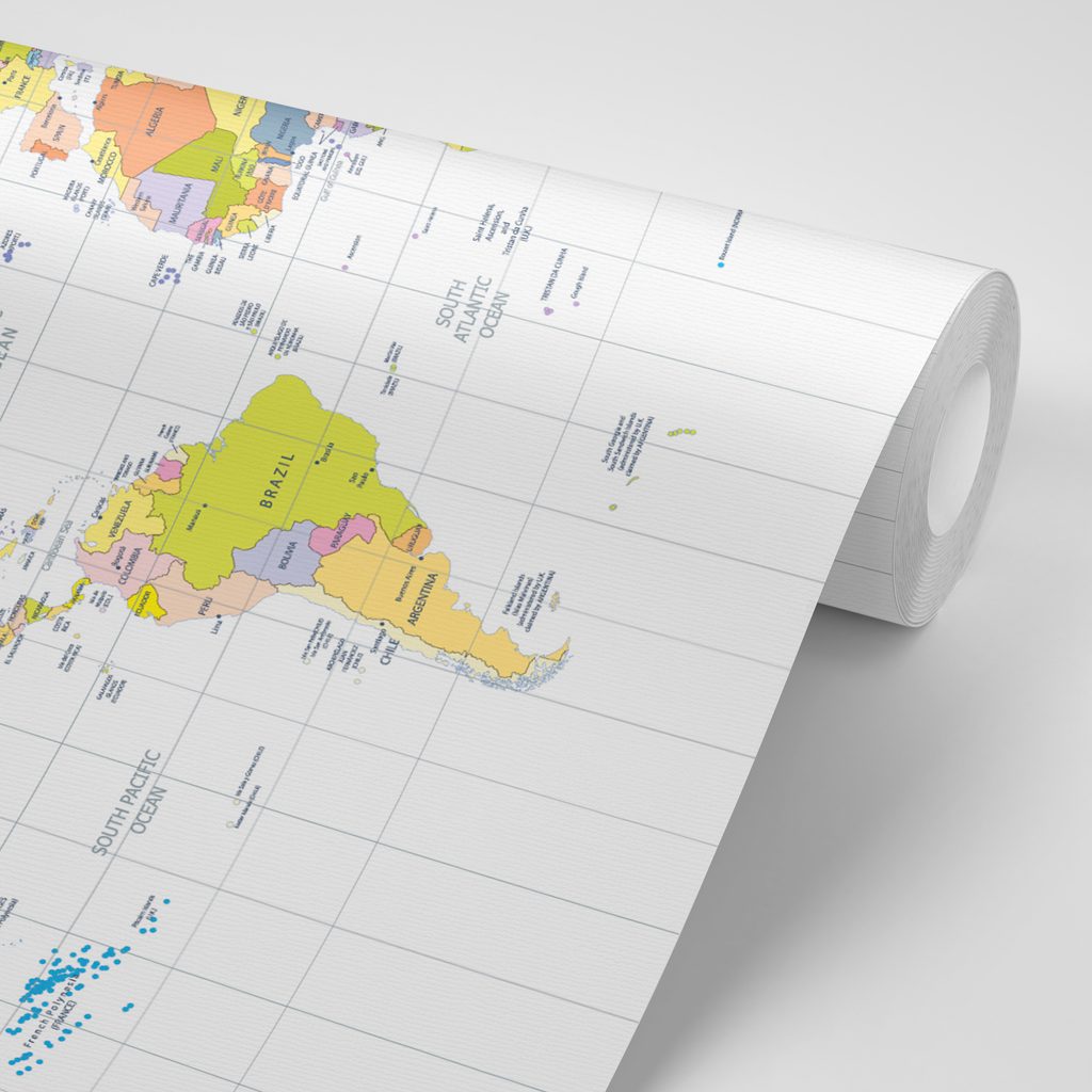 Samolepiaca tapeta prehľadná mapa sveta na bielom pozadí