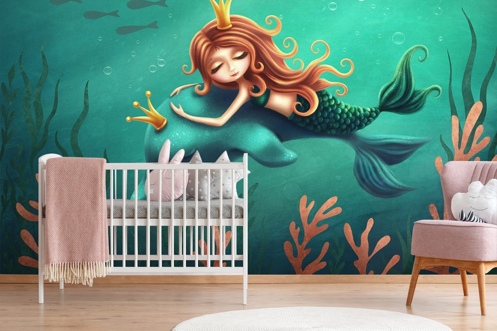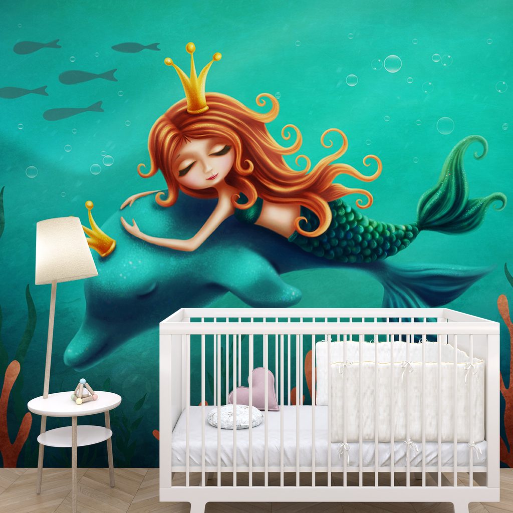 Samolepiaca tapeta priateľstvo morskej víly a delfína