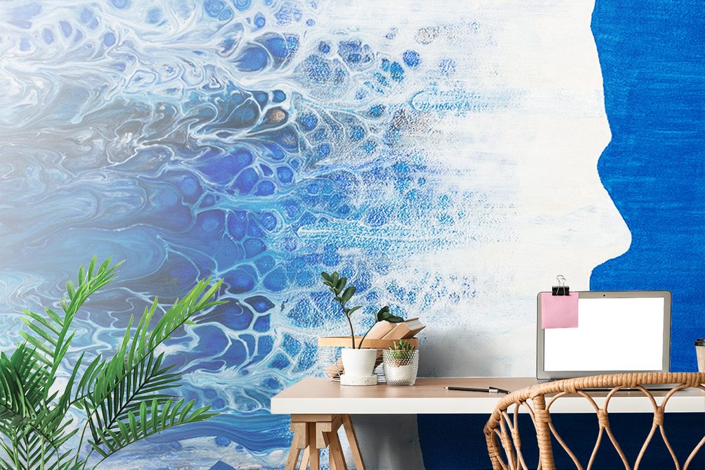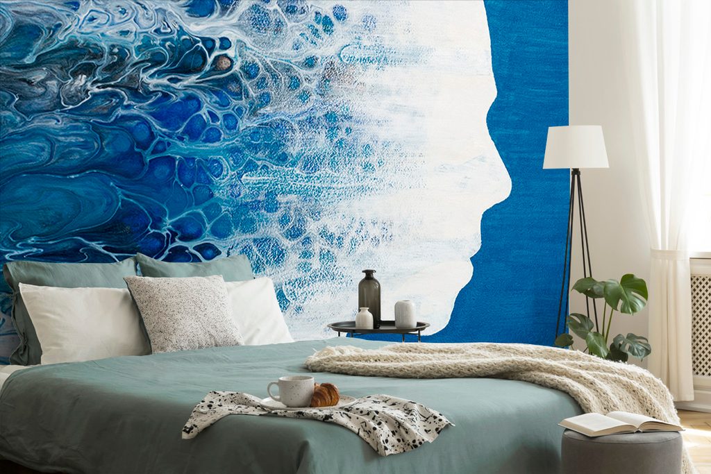 Samolepiaca tapeta profil ženy s modrou abstrakciou