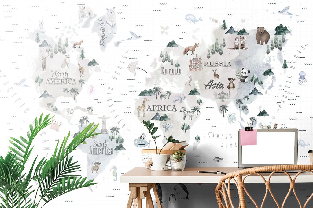 Samolepiaca tapeta náučná mapa sveta pre deti