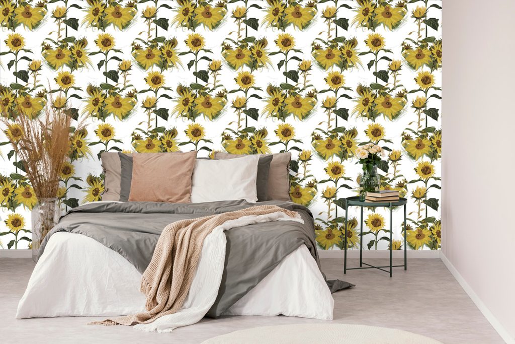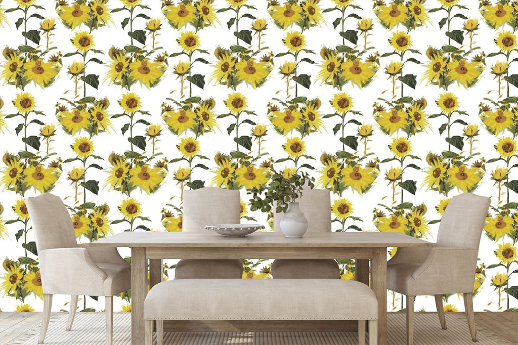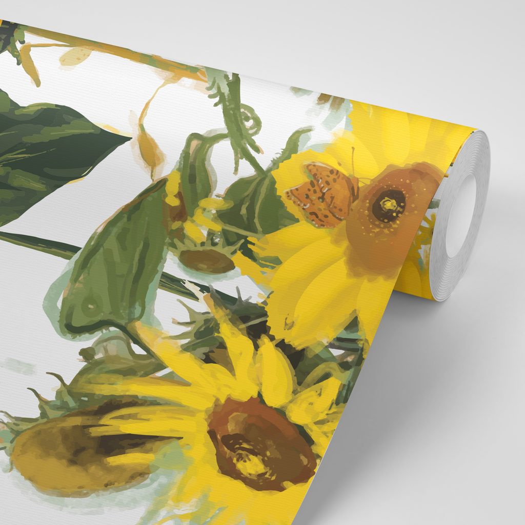 Samolepiaca tapeta rozkvitnuté slnečnice na bielom pozadí