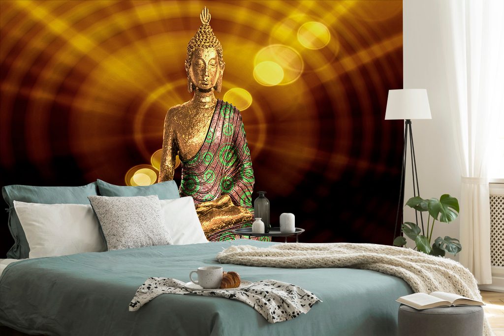 Samolepiaca tapeta socha Budhu na žiarivom pozadí