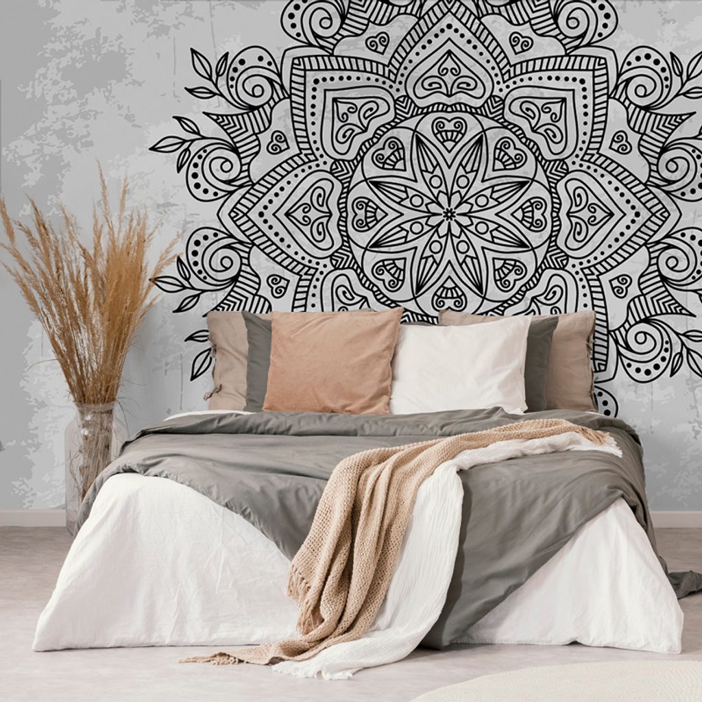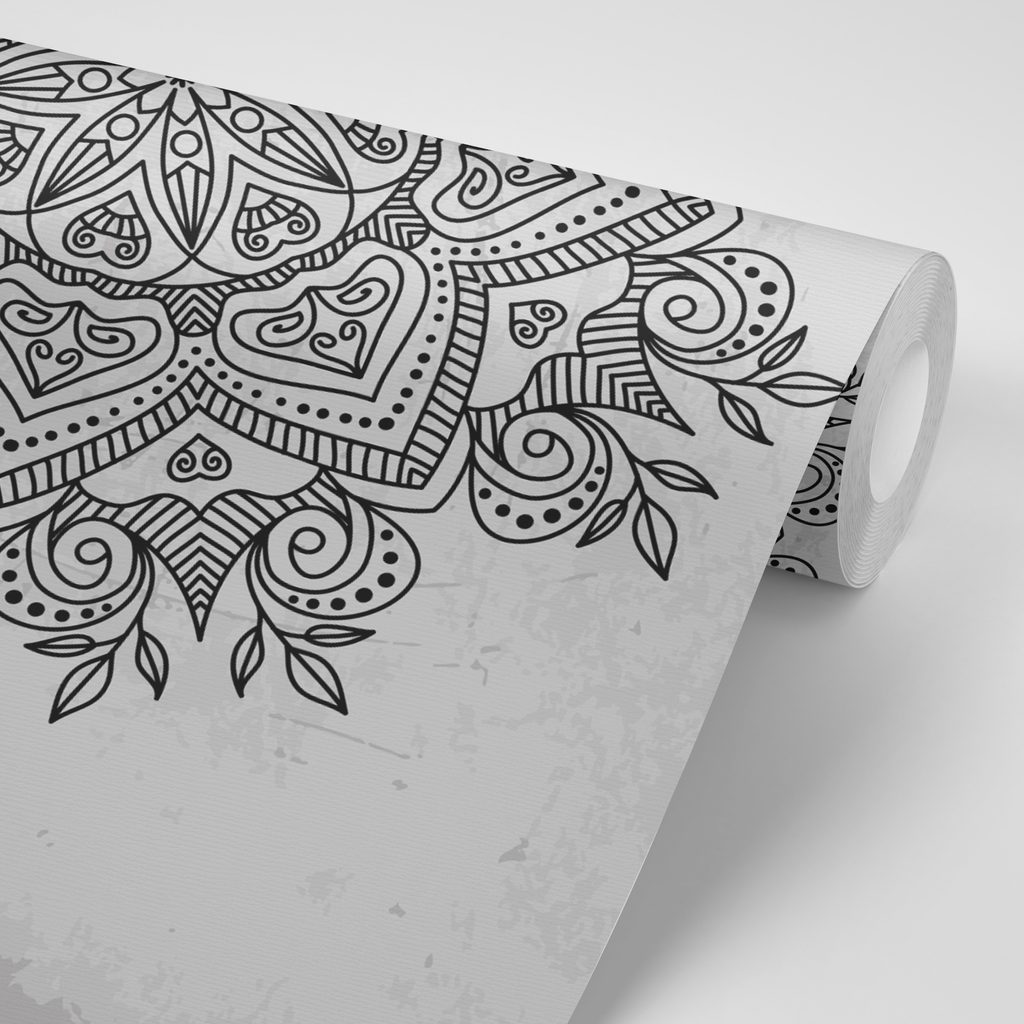 Samolepiaca tapeta starodávna Mandala v čiernobielom prevedení