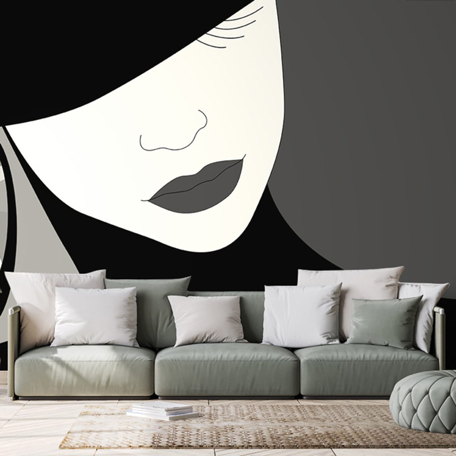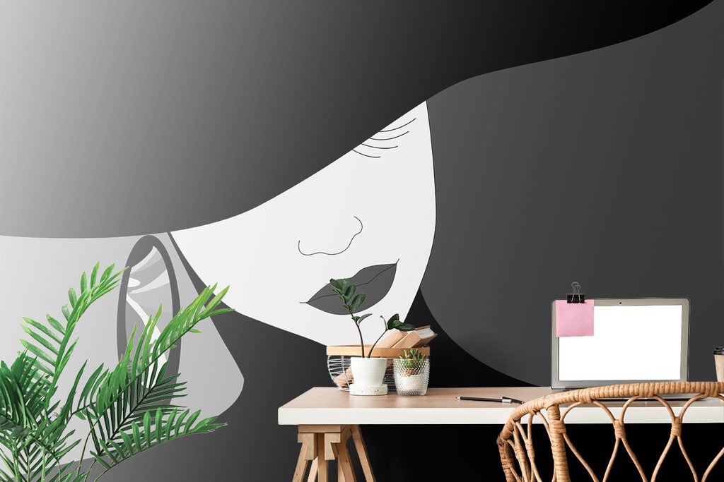 Samolepiaca tapeta tajomná žena v klobúku v čiernobielom prevedení