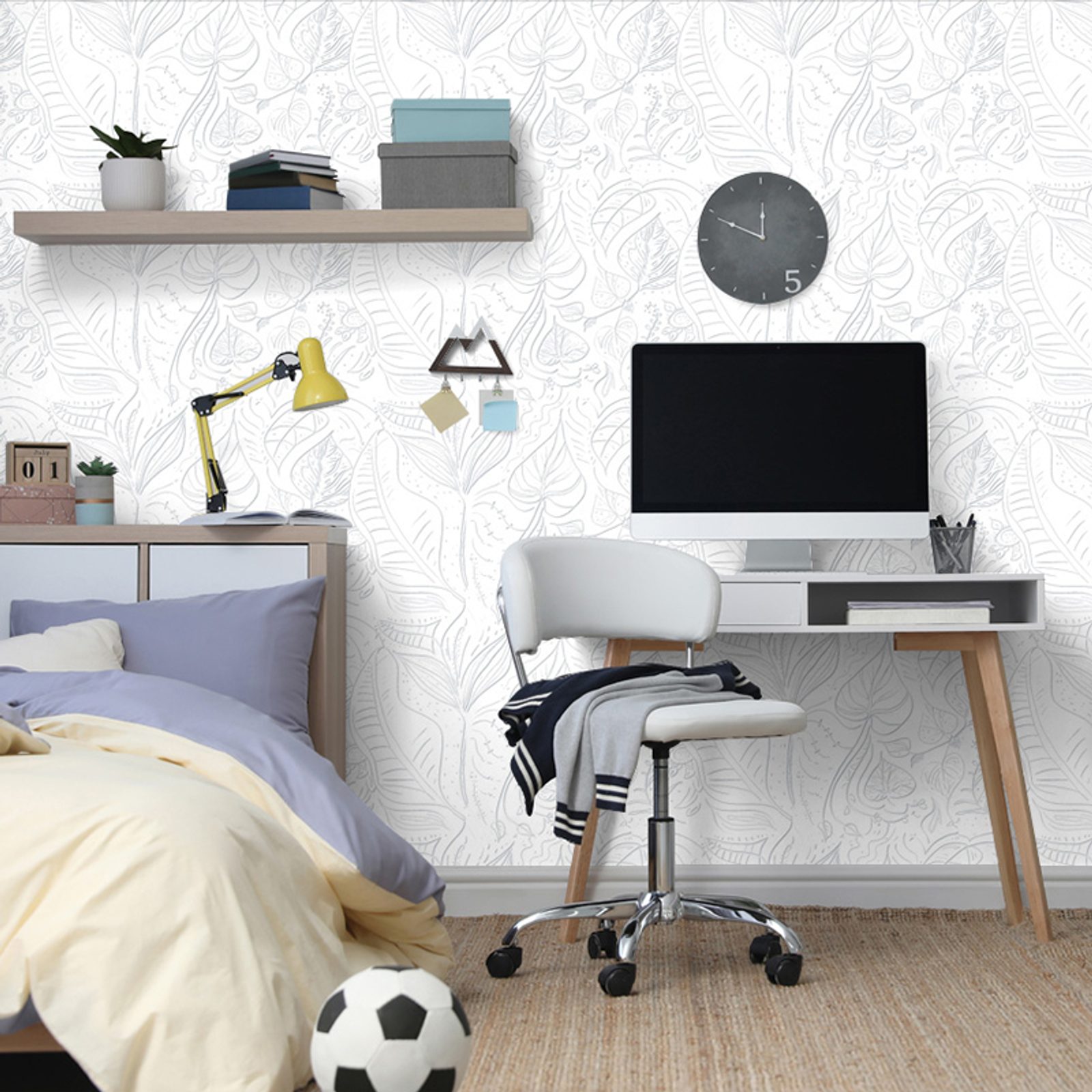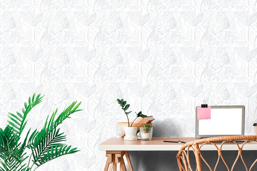 Samolepiaca tapeta umelecké listy v bielom prevedení