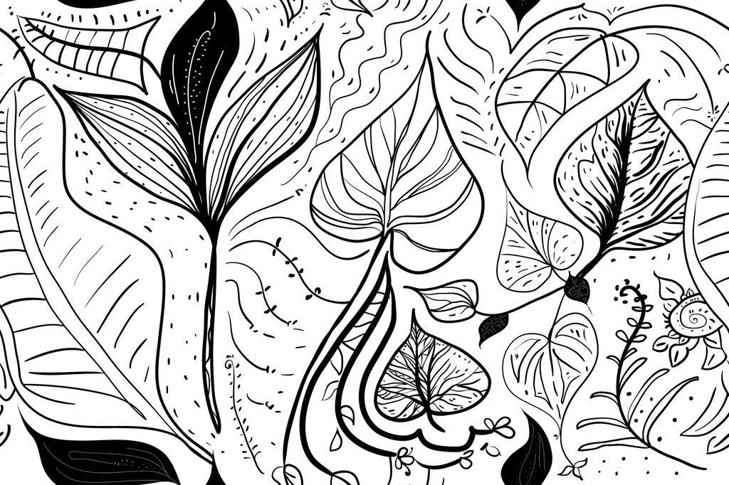 Samolepiaca tapeta umelecké listy v čiernobielom prevedení