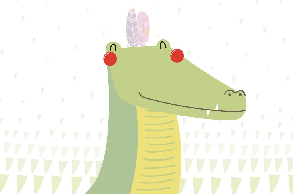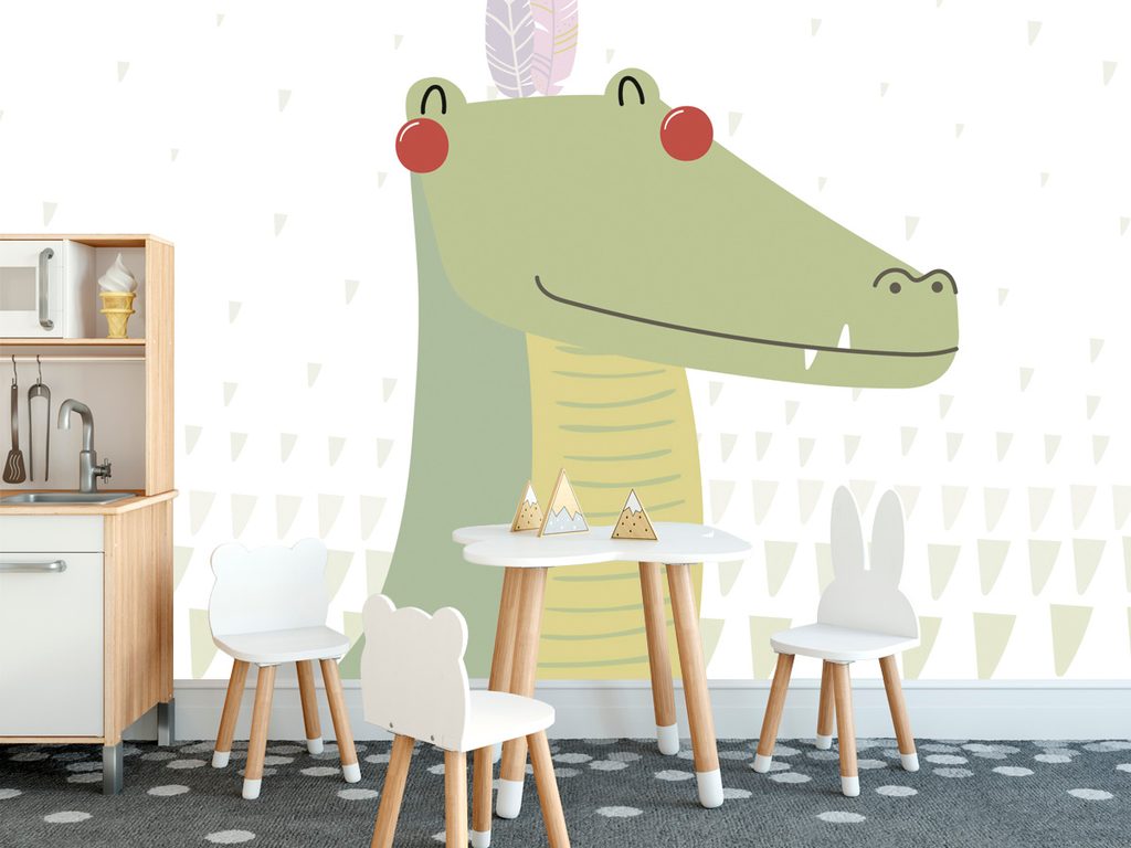 Samolepiaca tapeta usmievavý krokodíl s indiánskymi pierkami