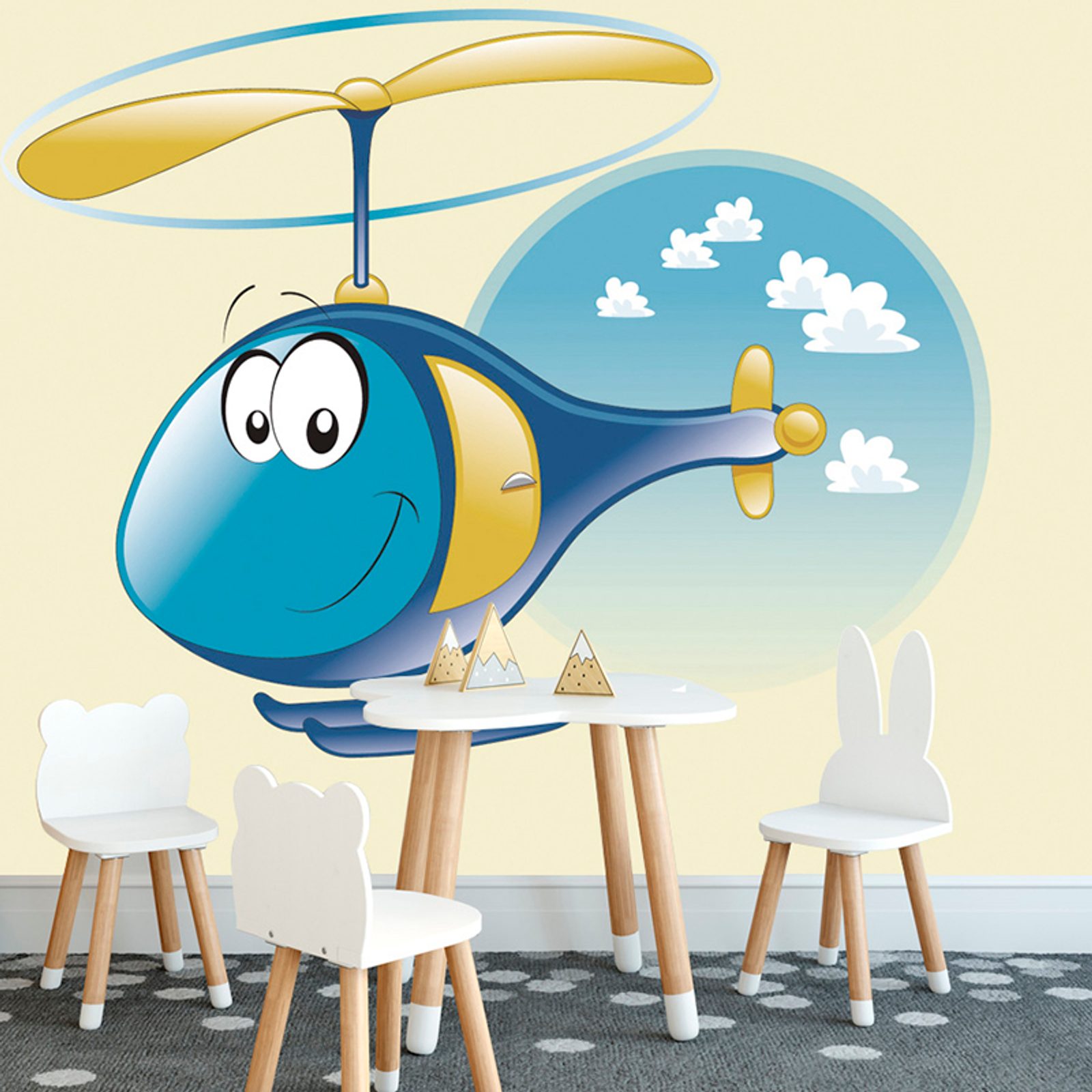 Samolepiaca tapeta veselá helikoptéra na oblohe