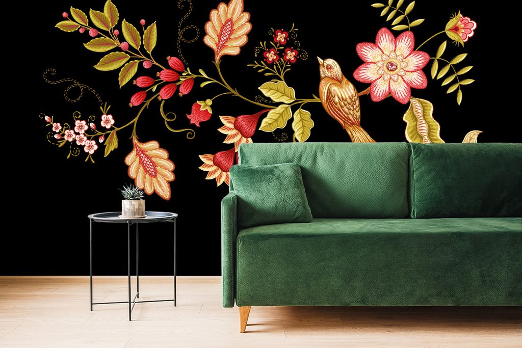 Samolepiaca tapeta vtáčik na vetvičke v ľudovom prevedení