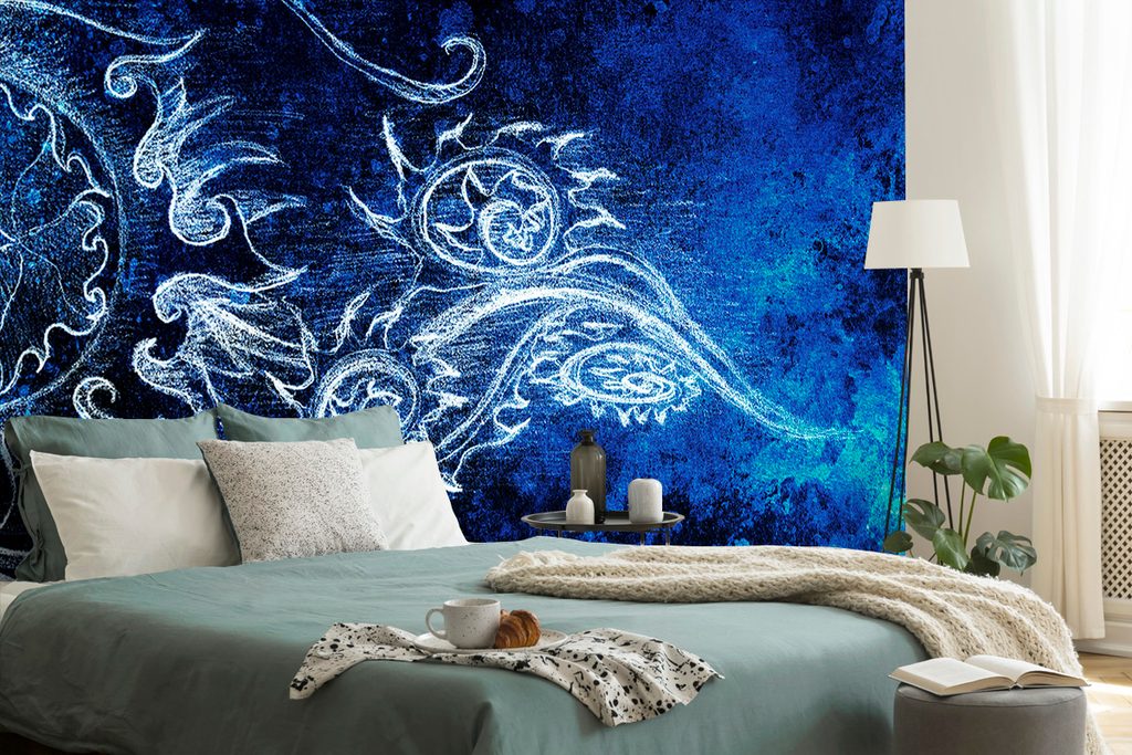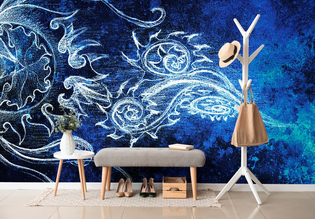 Samolepiaca tapeta zaujímavá kresba na modrom pozadí