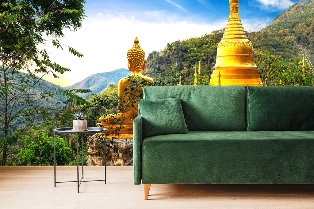Samolepiaca tapeta zlatý Budha obklopený stromami
