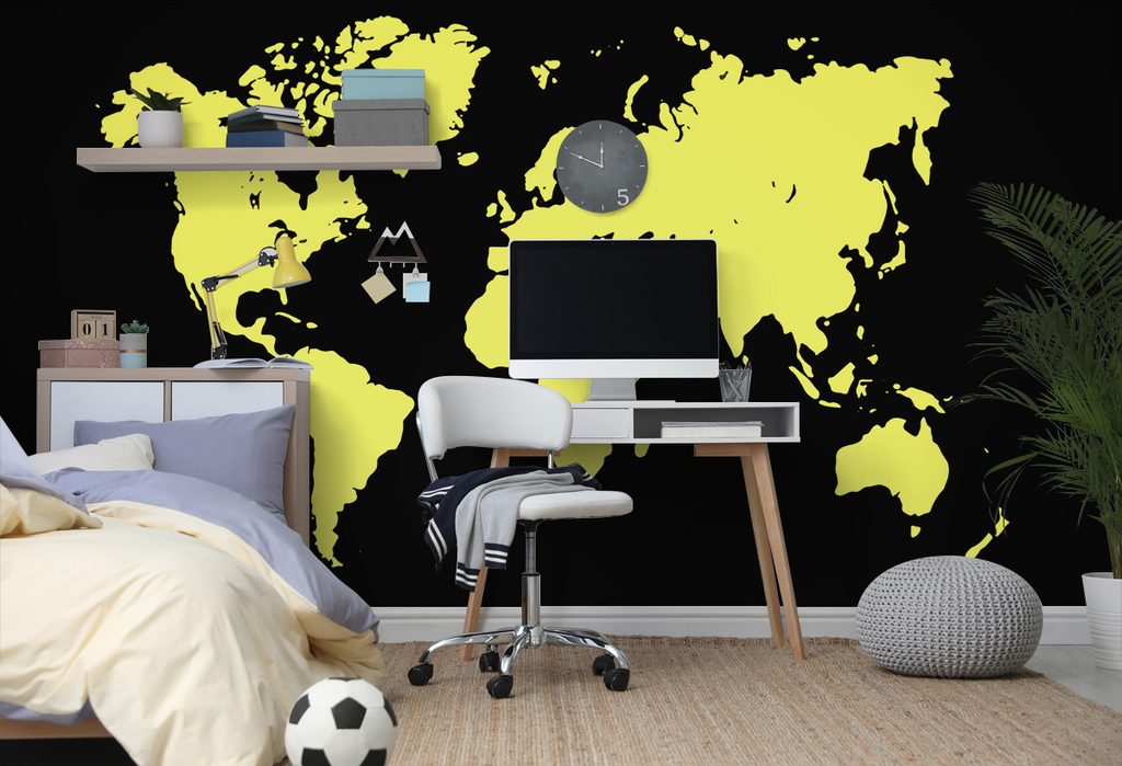 Samolepiaca tapeta žltá mapa sveta