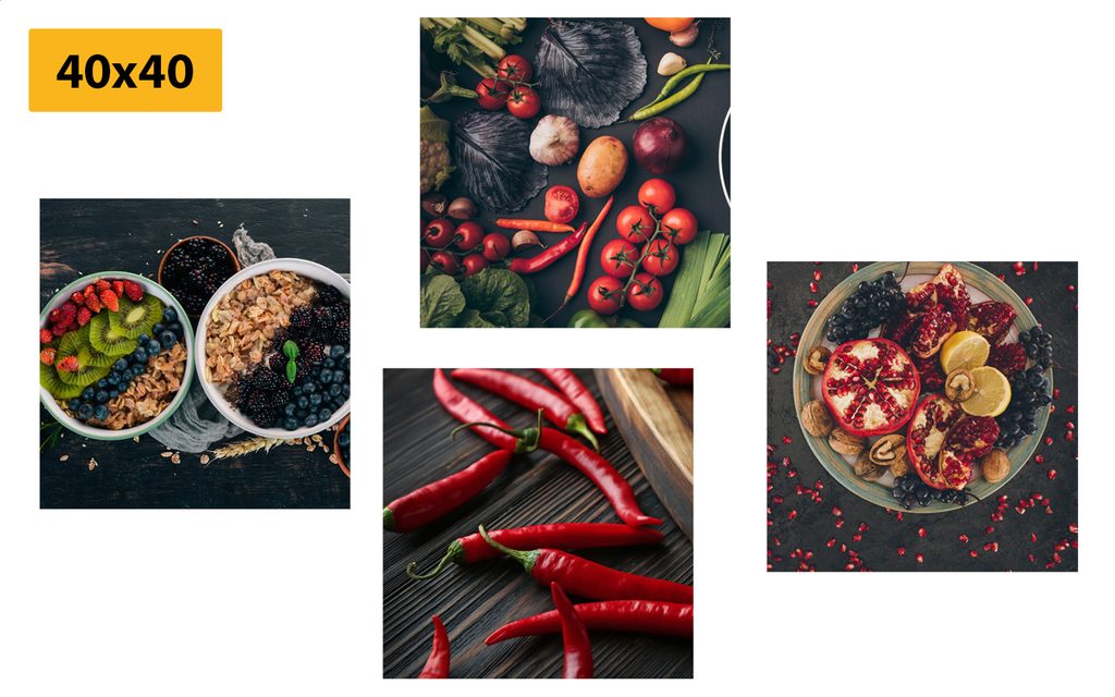 Naše sety obrazov, ktoré sa skladajú zo 4 obrazov ponúkame v dvoch rozmeroch (v cm):
