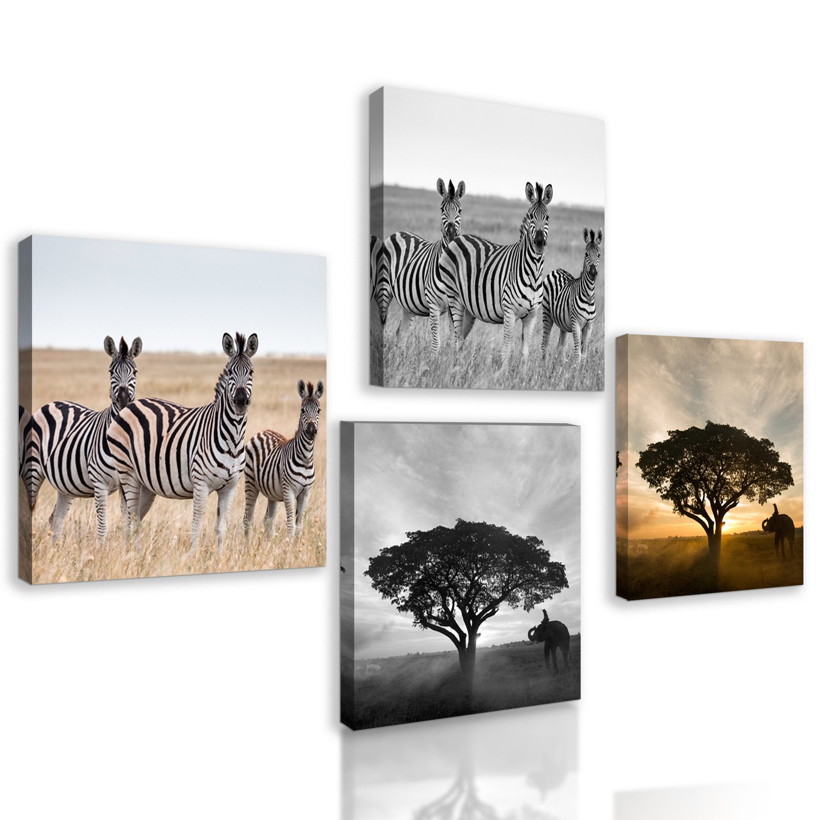 Fantázii sa medze nekladú a preto si set, ktorý tvoria 4 obrazy, môžete rozmiestniť na stenu ako len chcete. Možností je veľa, buď si ich usporiadate vedľa seba, striedavo, alebo pod sebou. Každý zo setov je univerzálny a preto umiestnenie jednotlivých obrazov necháme na vás.