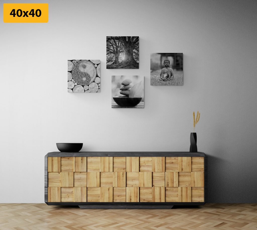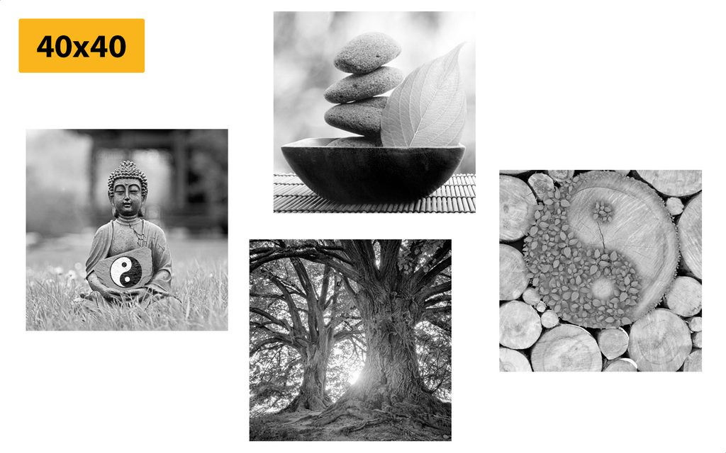 Set obrazov duchovná cesta v čiernobielom prevedení
