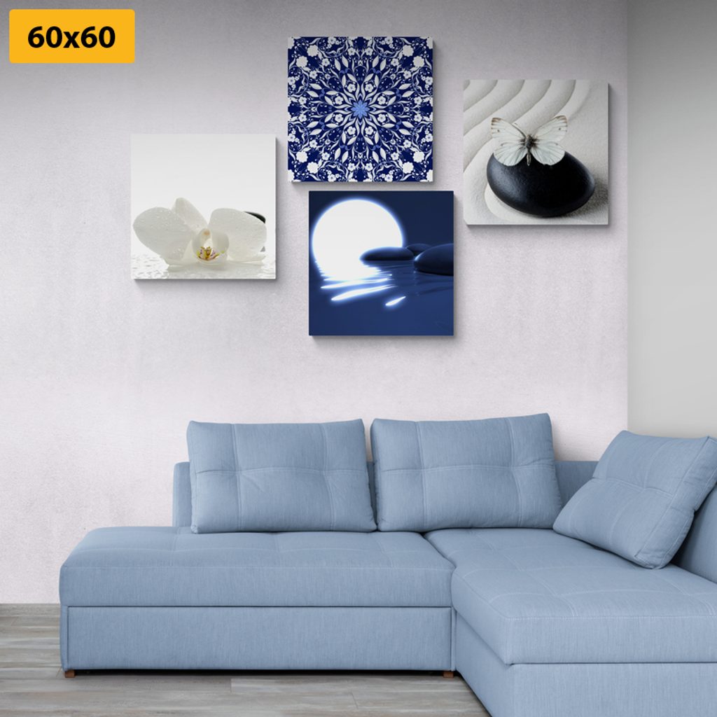 Set obrazov harmónia na bielo-modrom pozadí