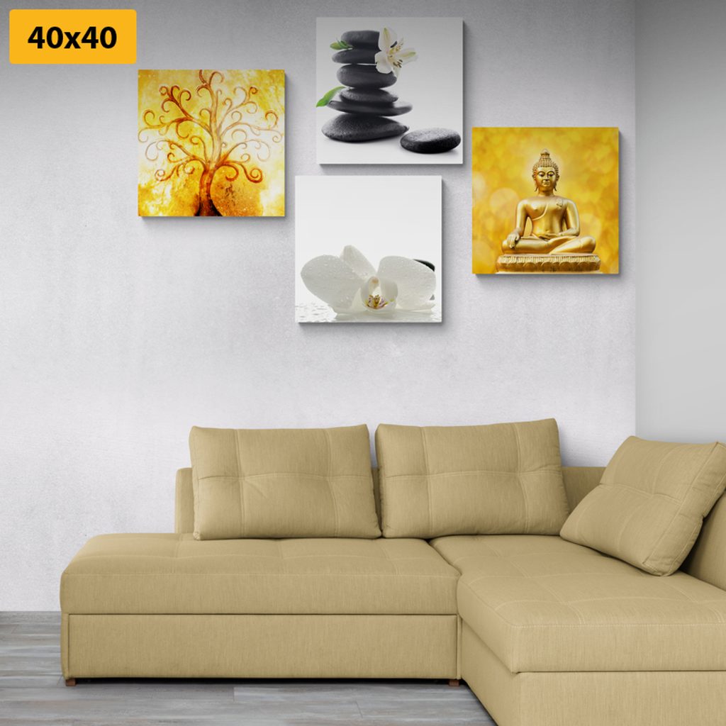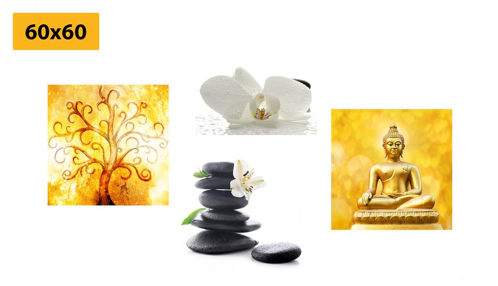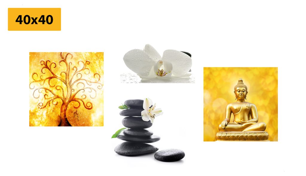 Set obrazov harmónia na bielo-zlatom pozadí