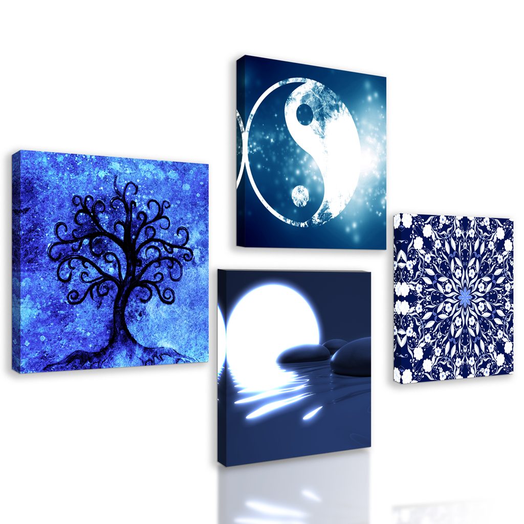 Set obrazov harmónia na modrom pozadí