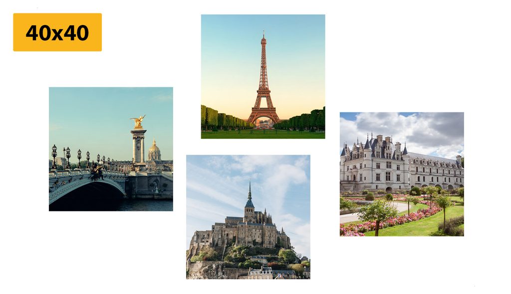 Naše sety obrazov, ktoré sa skladajú zo 4 obrazov ponúkame v dvoch rozmeroch (v cm):
