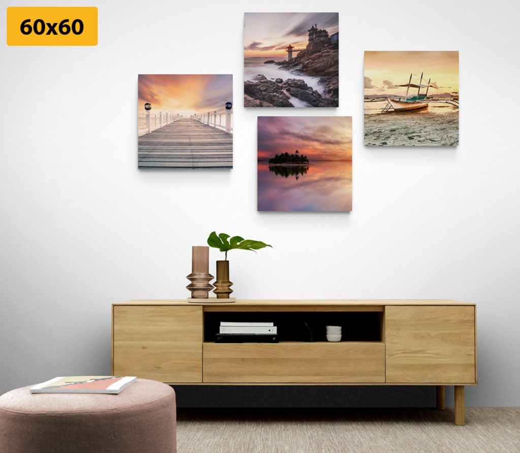 Fantázii sa medze nekladú a preto si set, ktorý tvoria 4 obrazy, môžete rozmiestniť na stenu ako len chcete. Možností je veľa, buď si ich usporiadate vedľa seba, striedavo, alebo pod sebou. Každý zo setov je univerzálny a preto umiestnenie jednotlivých obrazov necháme na vás.