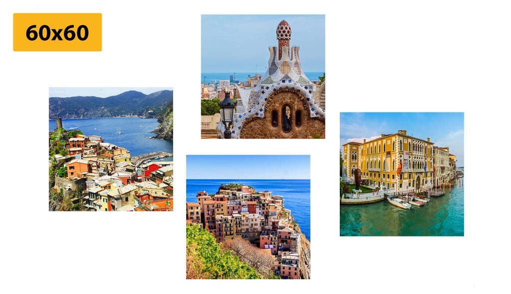 Naše sety obrazov, ktoré sa skladajú zo 4 obrazov ponúkame v dvoch rozmeroch (v cm):