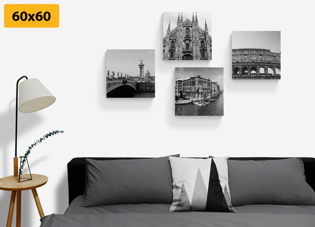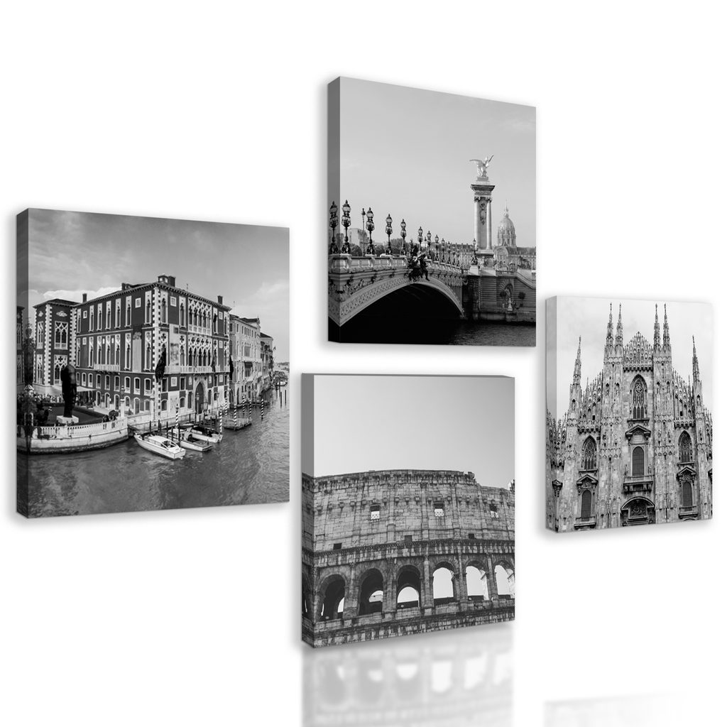 Set obrazov kultúrne mestá v čiernobielom prevedení