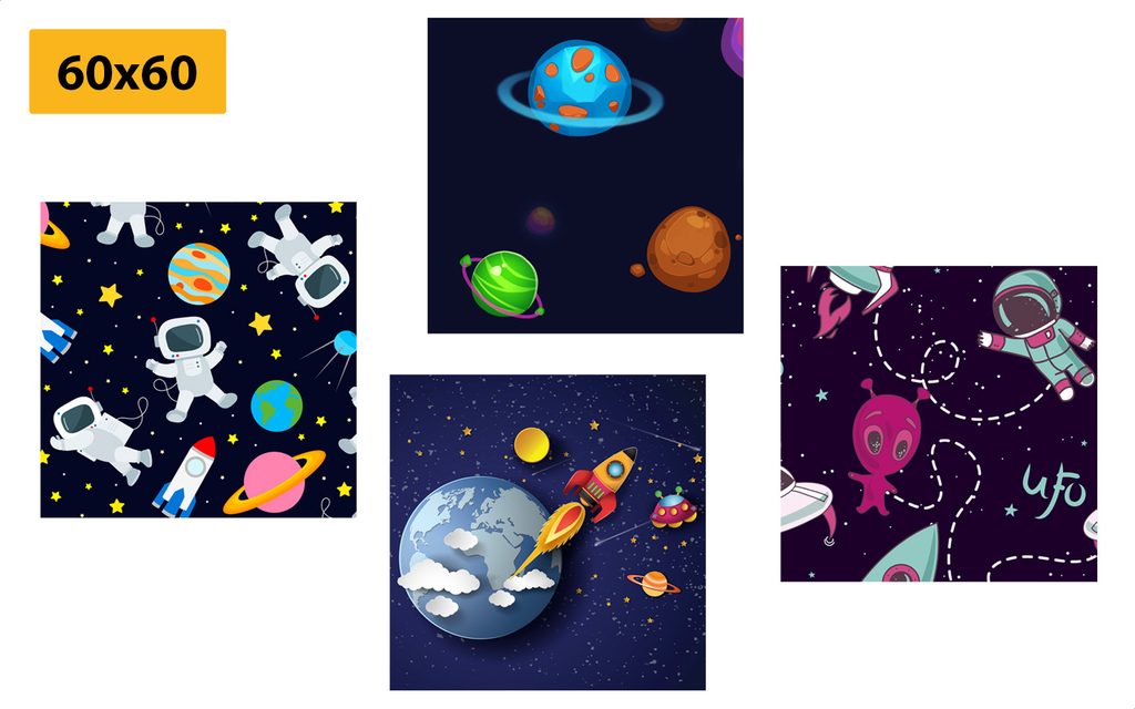 Fantázii sa medze nekladú a preto si set, ktorý tvoria 4 obrazy, môžete rozmiestniť na stenu ako len chcete. Možností je veľa, buď si ich usporiadate vedľa seba, striedavo, alebo pod sebou. Každý zo setov je univerzálny a preto umiestnenie jednotlivých obrazov necháme na vás.