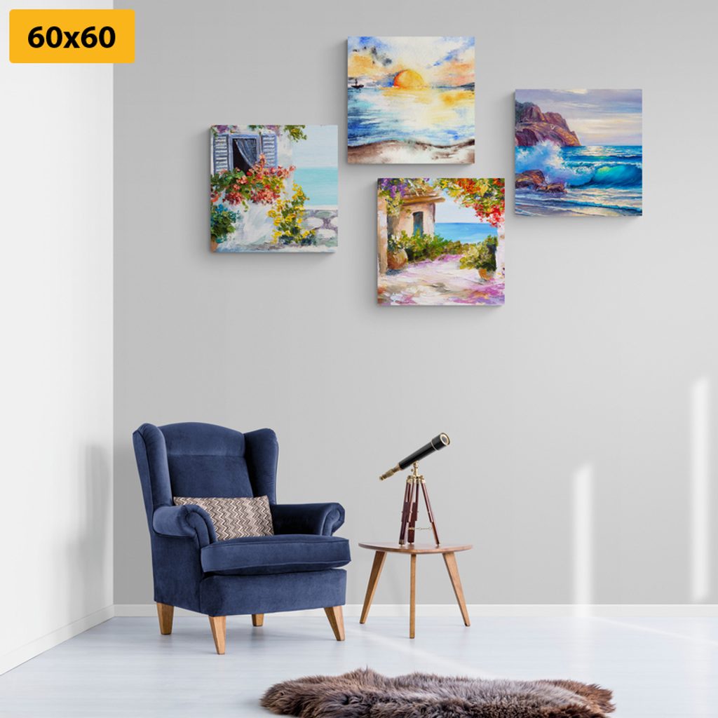 Set obrazov maľba prímorského mesta