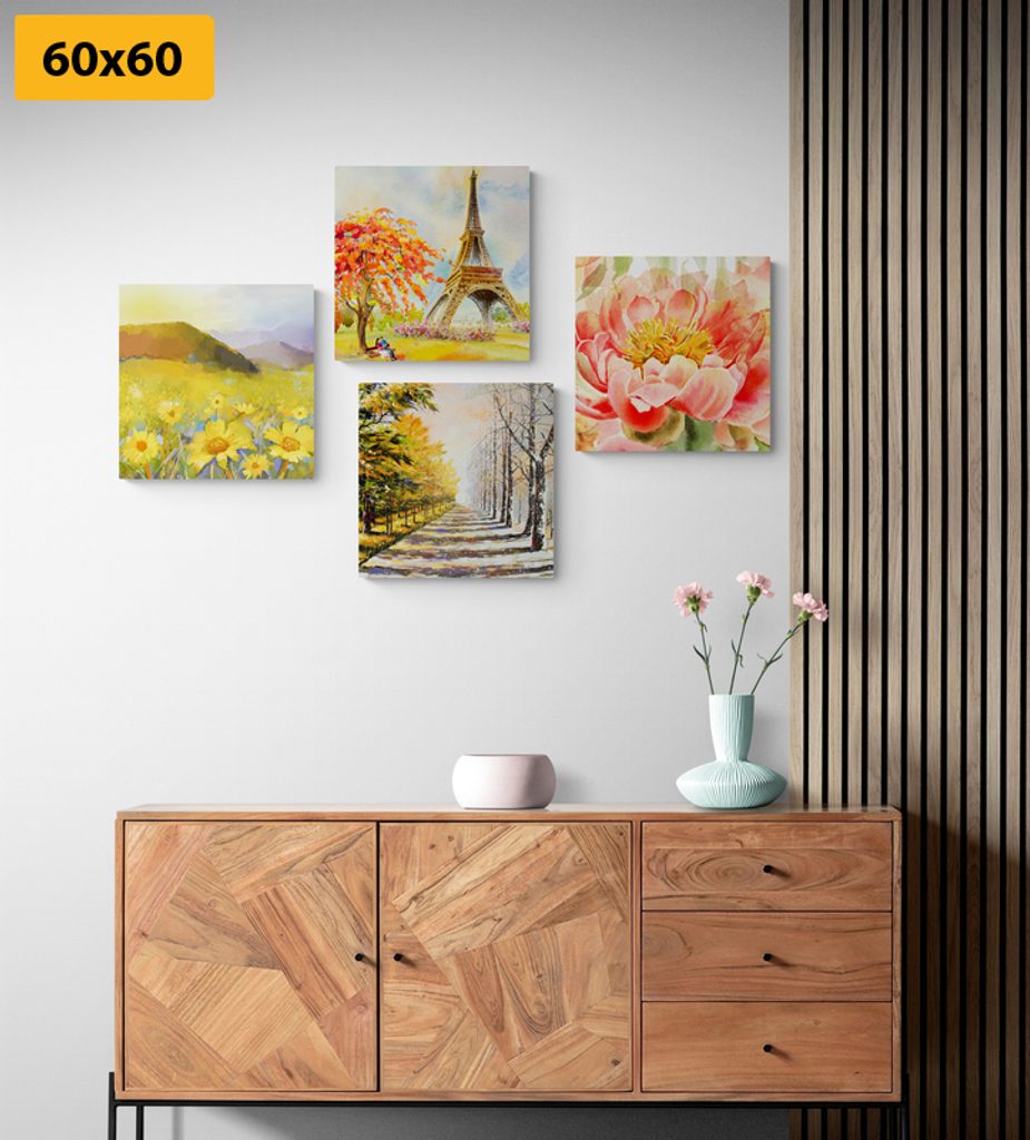 Fantázii sa medze nekladú a preto si set, ktorý tvoria 4 obrazy, môžete rozmiestniť na stenu ako len chcete. Možností je veľa, buď si ich usporiadate vedľa seba, striedavo, alebo pod sebou. Každý zo setov je univerzálny a preto umiestnenie jednotlivých obrazov necháme na vás.