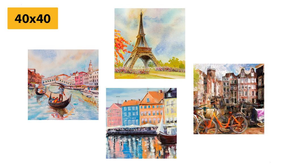 Naše sety obrazov, ktoré sa skladajú zo 4 obrazov ponúkame v dvoch rozmeroch (v cm):