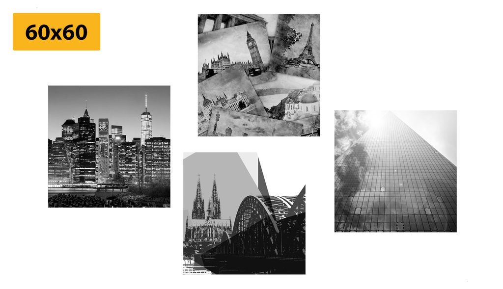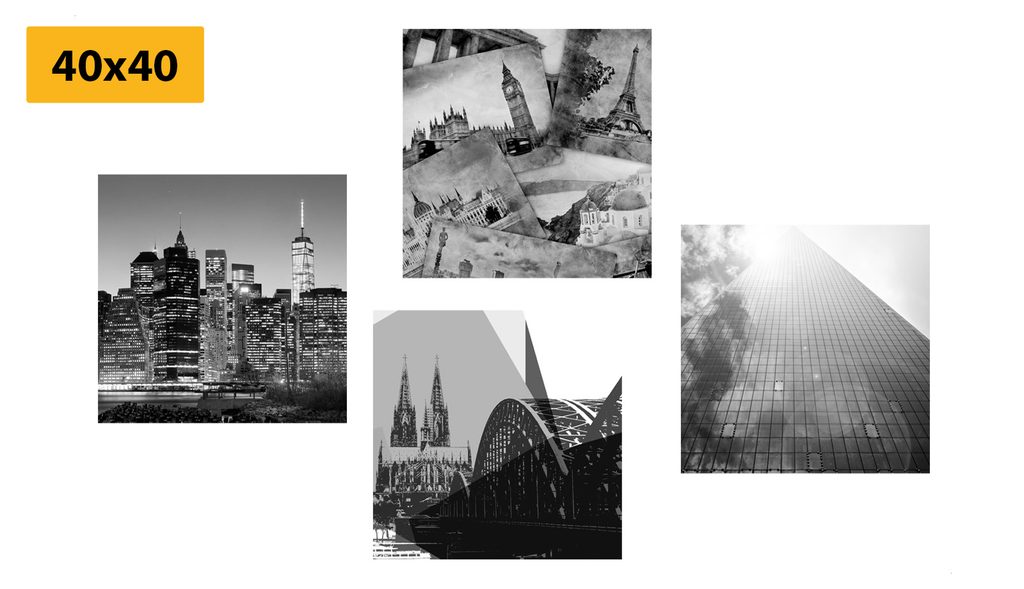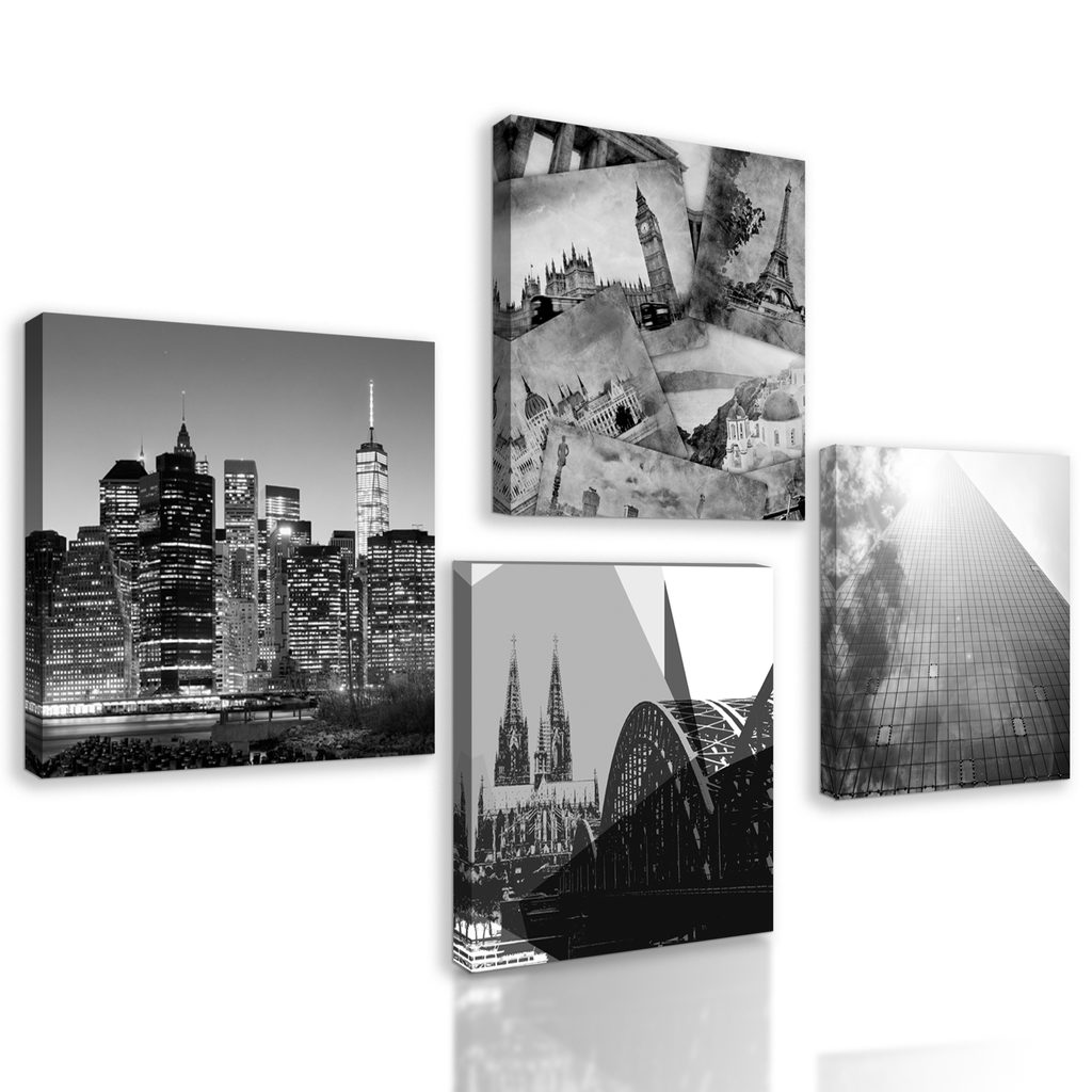 Set obrazov mestá v čiernobielom prevedení