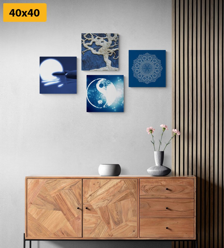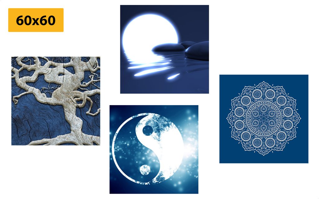 Set obrazov motívy Feng Shui v modrých farbách