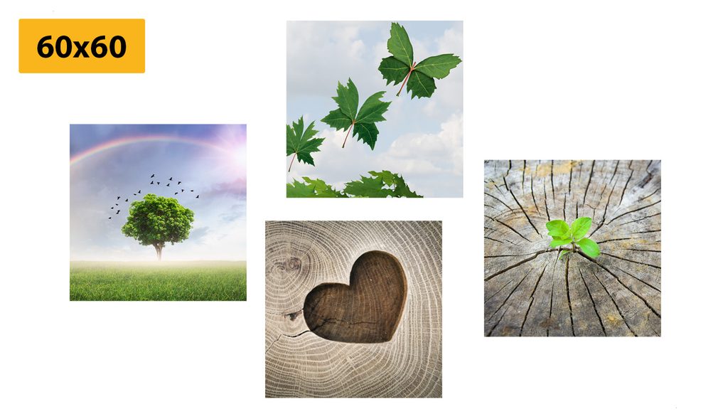 Fantázii sa medze nekladú a preto si set, ktorý tvoria 4 obrazy, môžete rozmiestniť na stenu ako len chcete. Možností je veľa, buď si ich usporiadate vedľa seba, striedavo, alebo pod sebou. Každý zo setov je univerzálny a preto umiestnenie jednotlivých obrazov necháme na vás.
