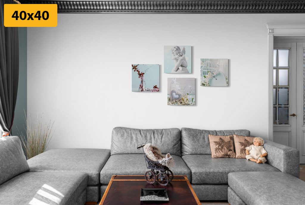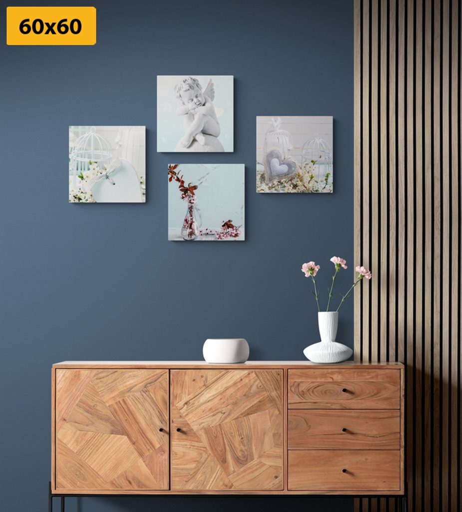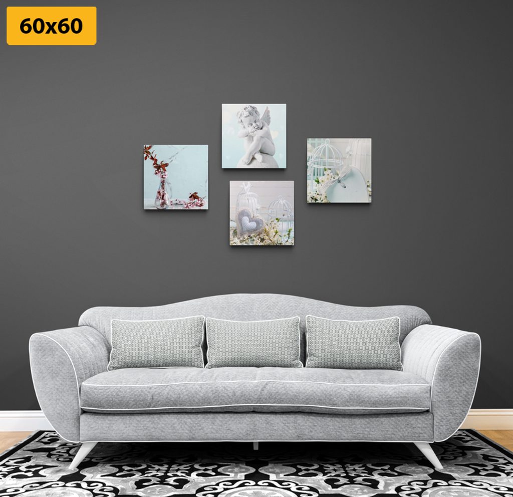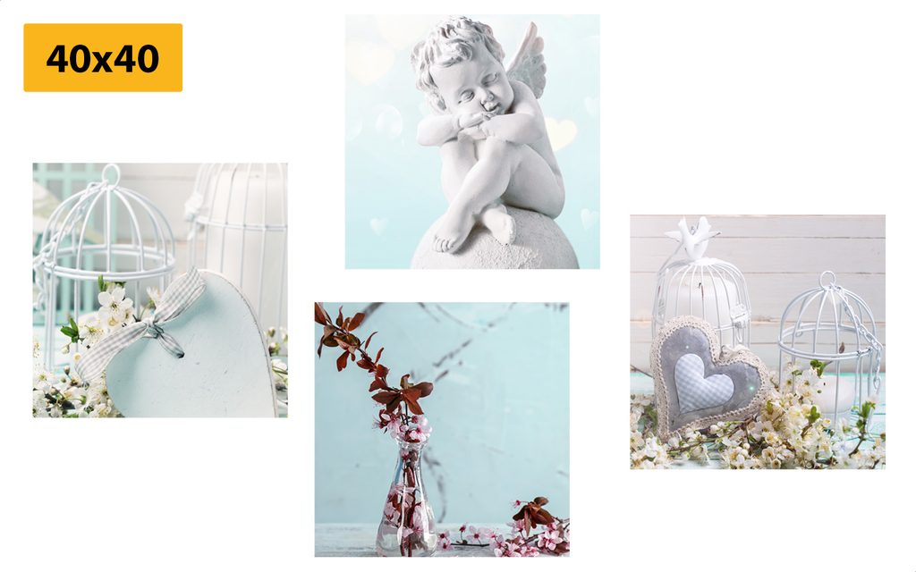 Set obrazov nežné svetlomodré zátišie s anjelikom