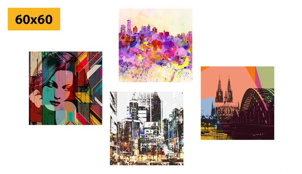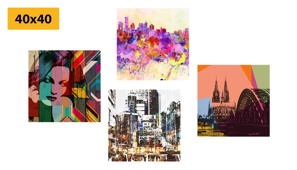 Naše sety obrazov, ktoré sa skladajú zo 4 obrazov ponúkame v dvoch rozmeroch (v cm):